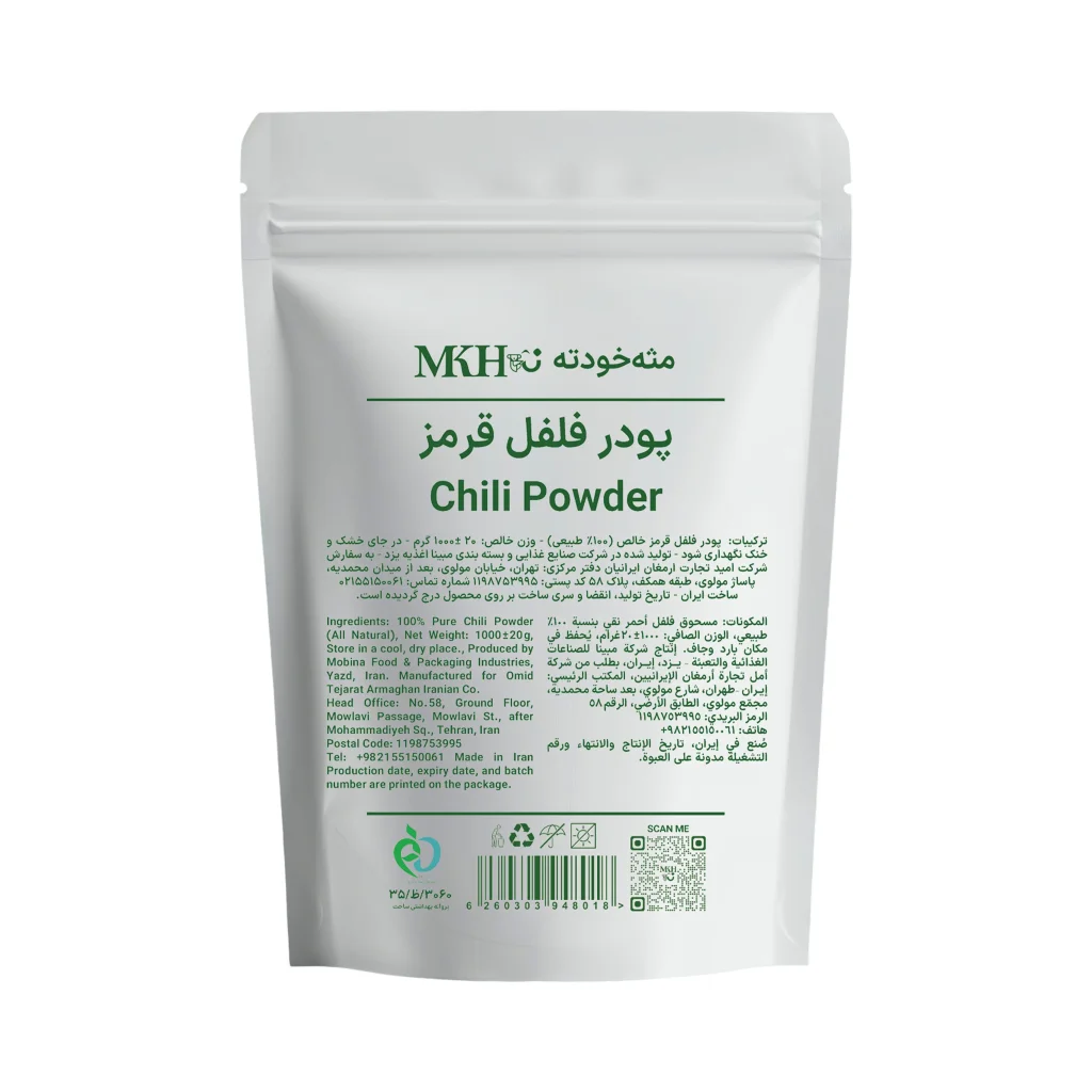 - مراقبت در هنگام استفاده: در هنگام کار با پودر فلفل قرمز، از تماس با چشم و دهان خودداری نمایید؛ زیرا ممکن است ایجاد سوزش کند.