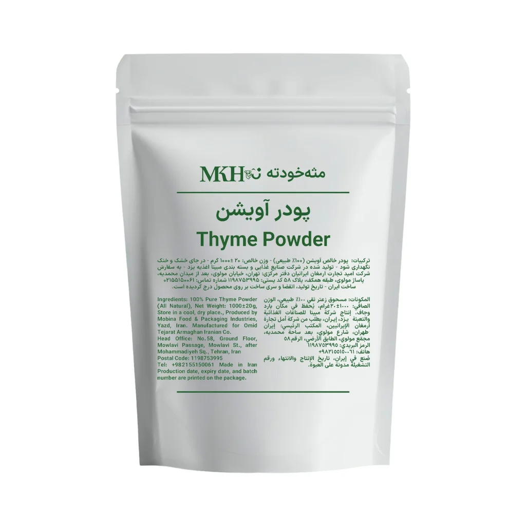 پودر آویشن ادویه ای معطر و پرخاصیت است که از آسیاب کردن برگ های خشک شده گیاه آویشن به دست می آید. این ادویه دارای طعمی گرم، تند و کمی تلخ است و در بسیاری از غذاها و نوشیدنی ها به عنوان طعم دهنده استفاده می شود.